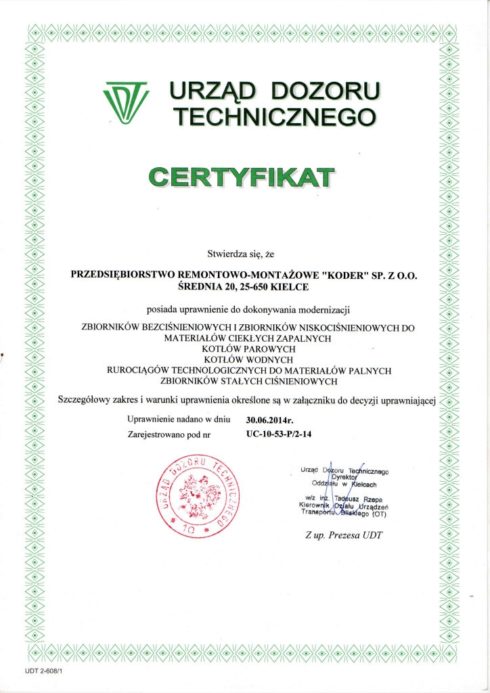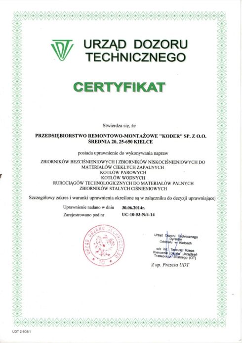 PRM KODER: zbiorniki ciśnieniowe, wymienniki ciepła, armatura przemysłowa, rurociągi przemysłowe, remonty.